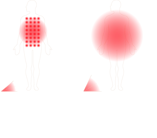 The Variable Optics™ technology uses a mix of 7 to 60 degree optics to create multiple cross acceptance angles of the light waves. This allows the light to travel better into our cells and offer more benefit.
